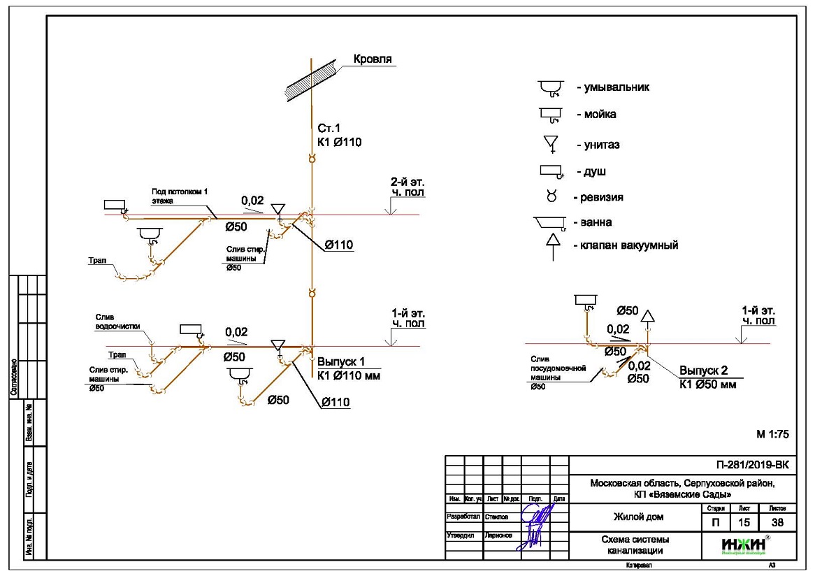 Внутренняя канализация (проект канализации) дома в КП "Вяземские Сады".