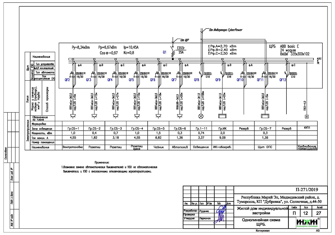 2. Однолинейные схемы вводного распределительного устройства и электрических распределительных щитов дома и бани 438 м.кв..
