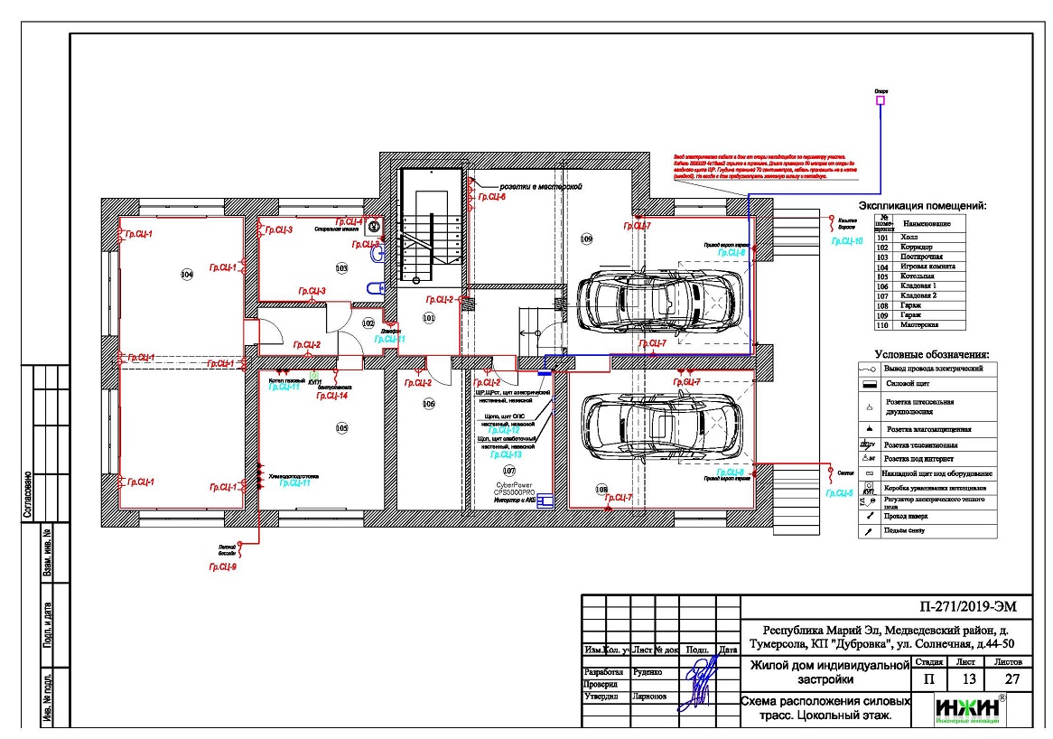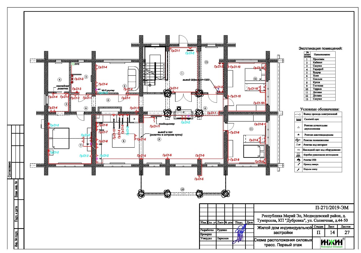 Проект электрики деревянного дома площадью 438 м.кв. в республике Марий Эл.