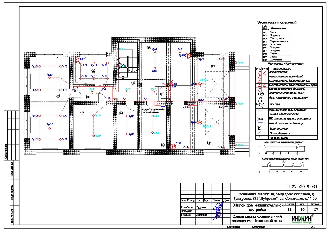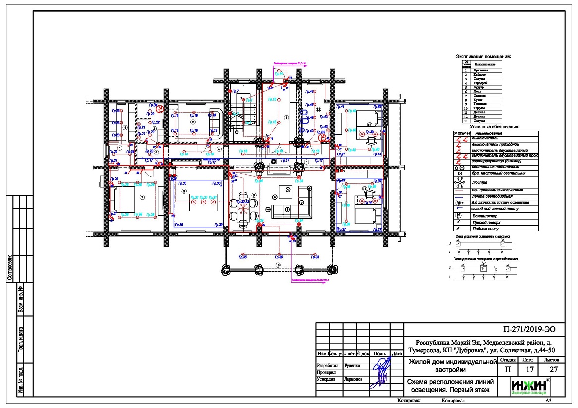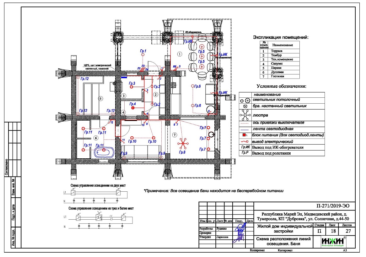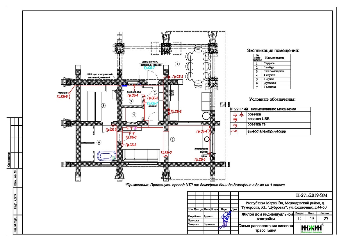 Объем проекта электрики дома с баней 438 м.кв.: 27 листов.