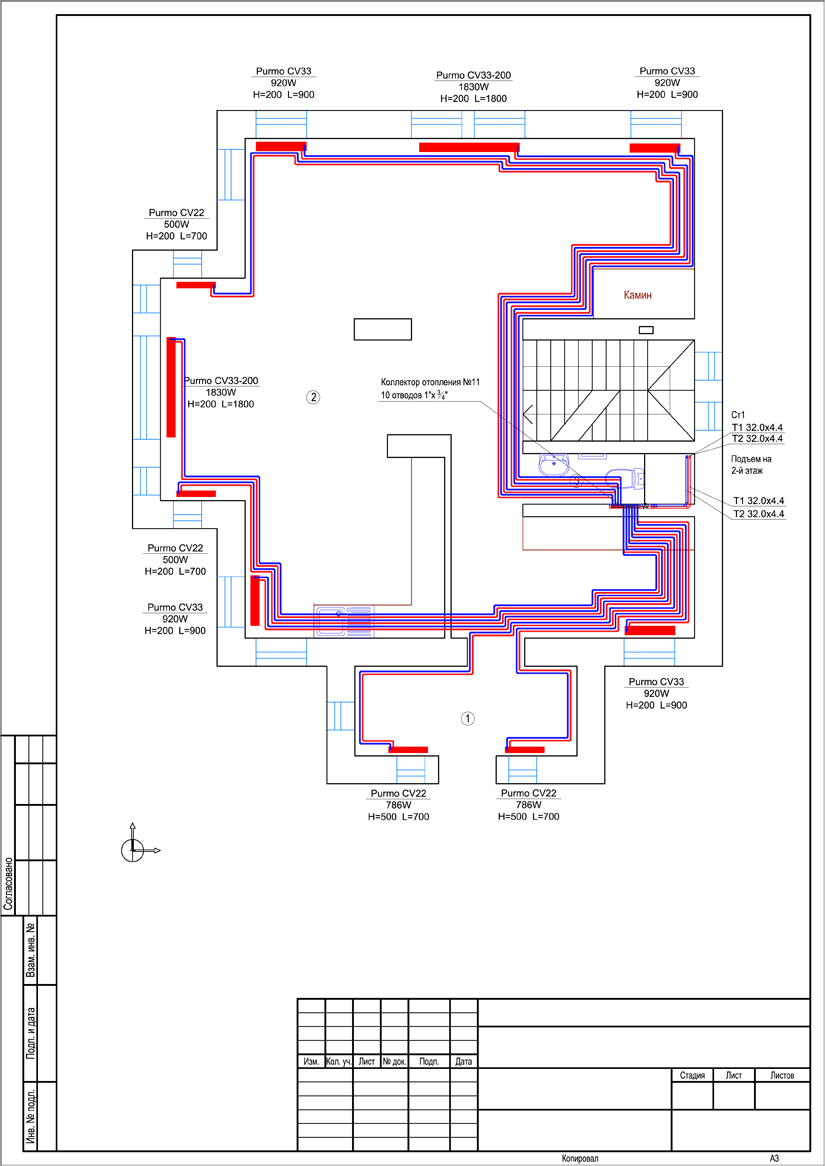 Система отопления дома в КП "Фонтебло" (проект отопления).