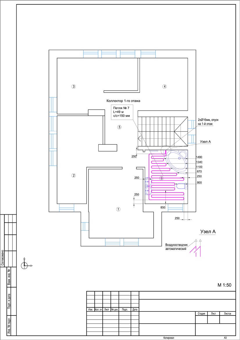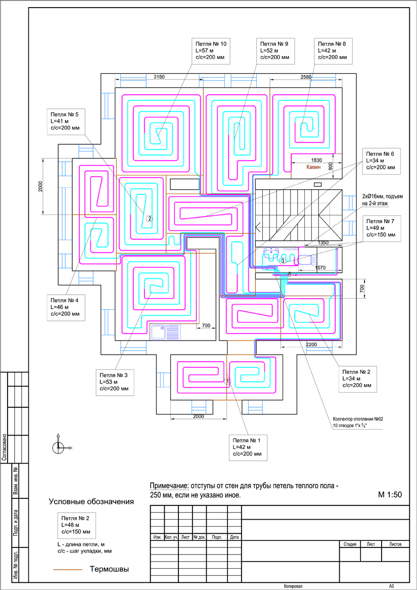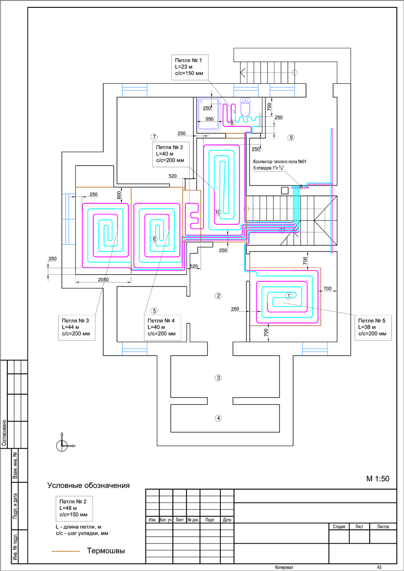 5. Комплект чертежей водяного теплого пола дома.