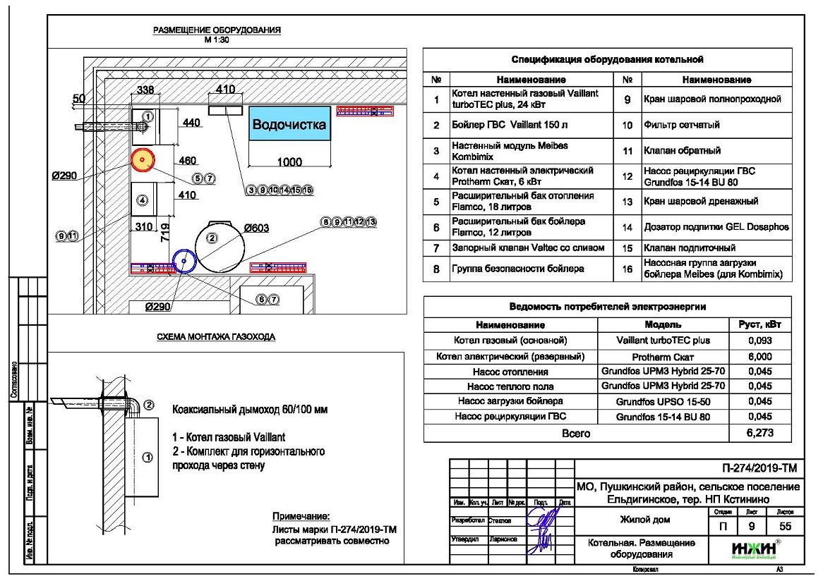 Состав проекта котельной, отопления, канализации и водоснабжения дома в НП Кстинино: