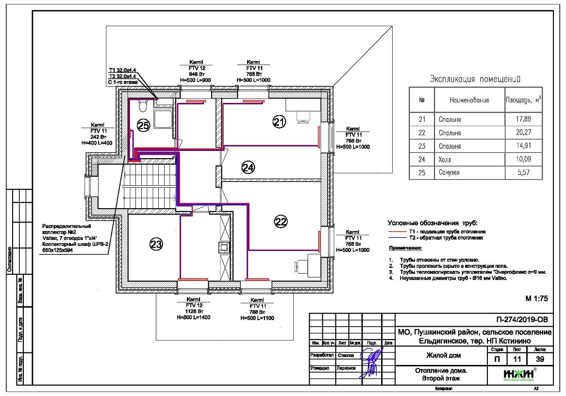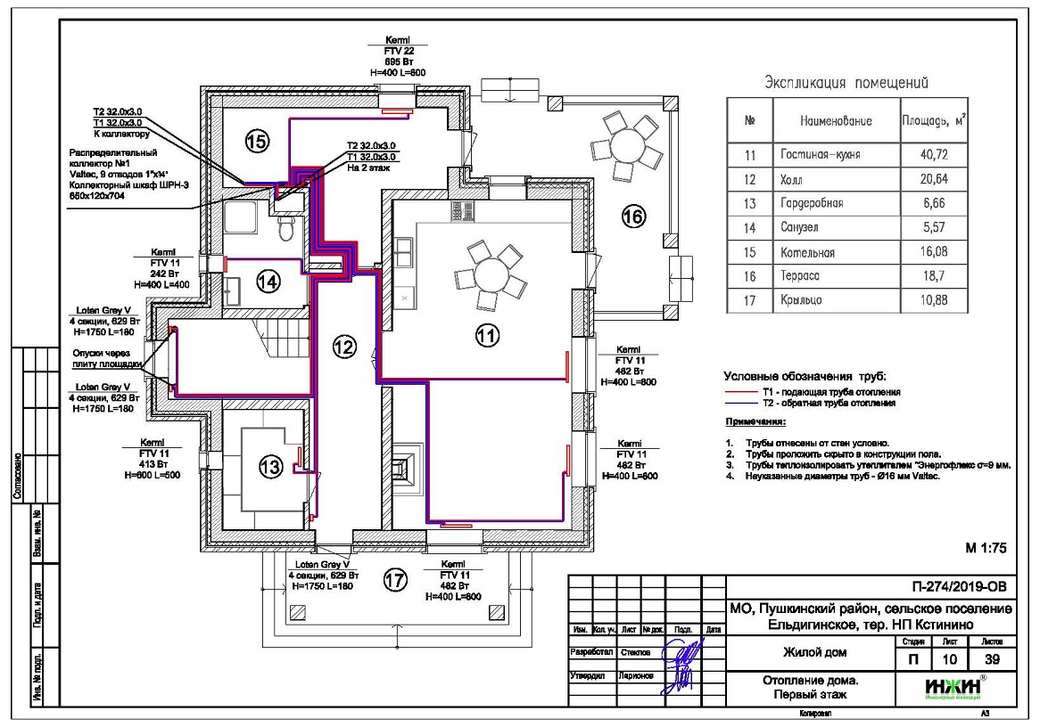 Объем проекта отопления, канализации и водоснабжения дома: 39 листов.