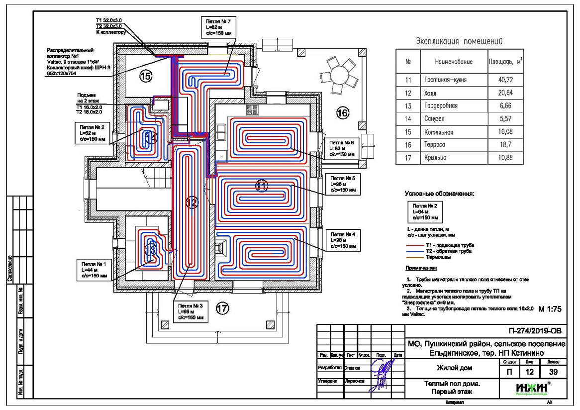 Водяной теплый пол дома в НП Кстинино (проект теплого пола).