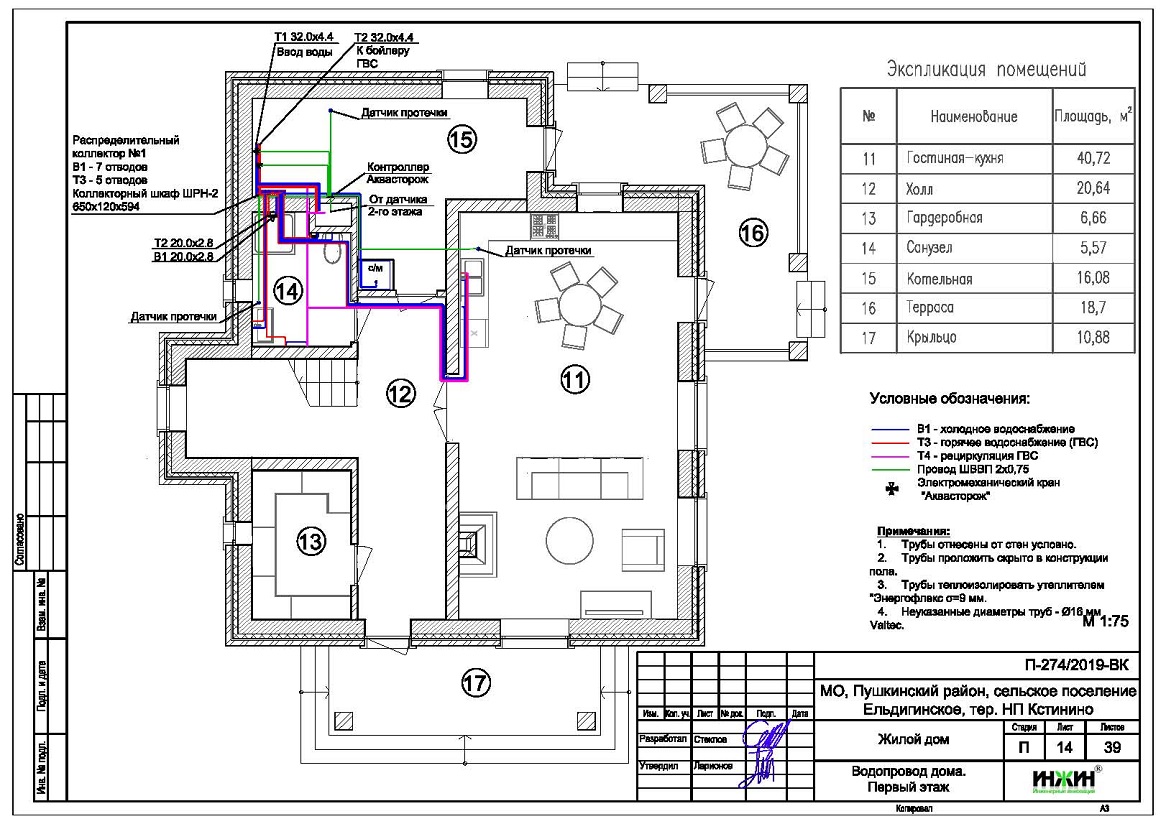 Внутренний водопровод дома в НП Кстинино (проект водоснабжения).
