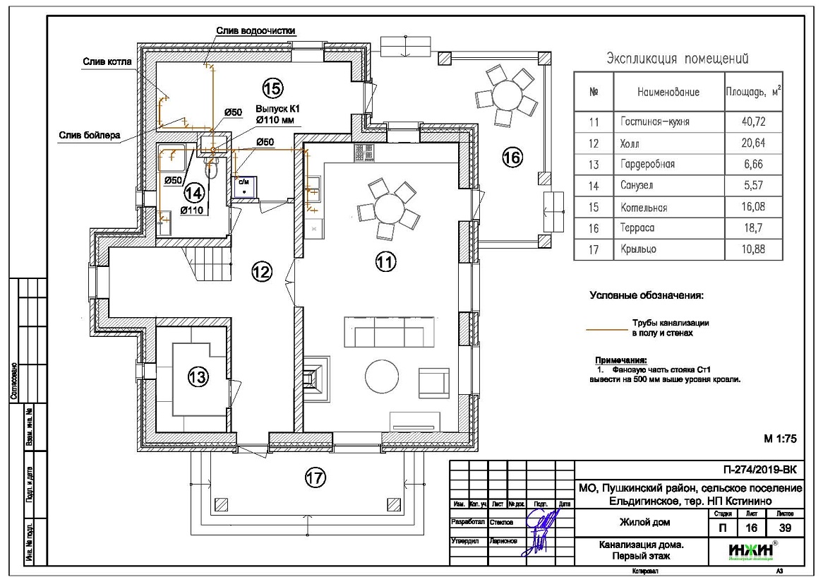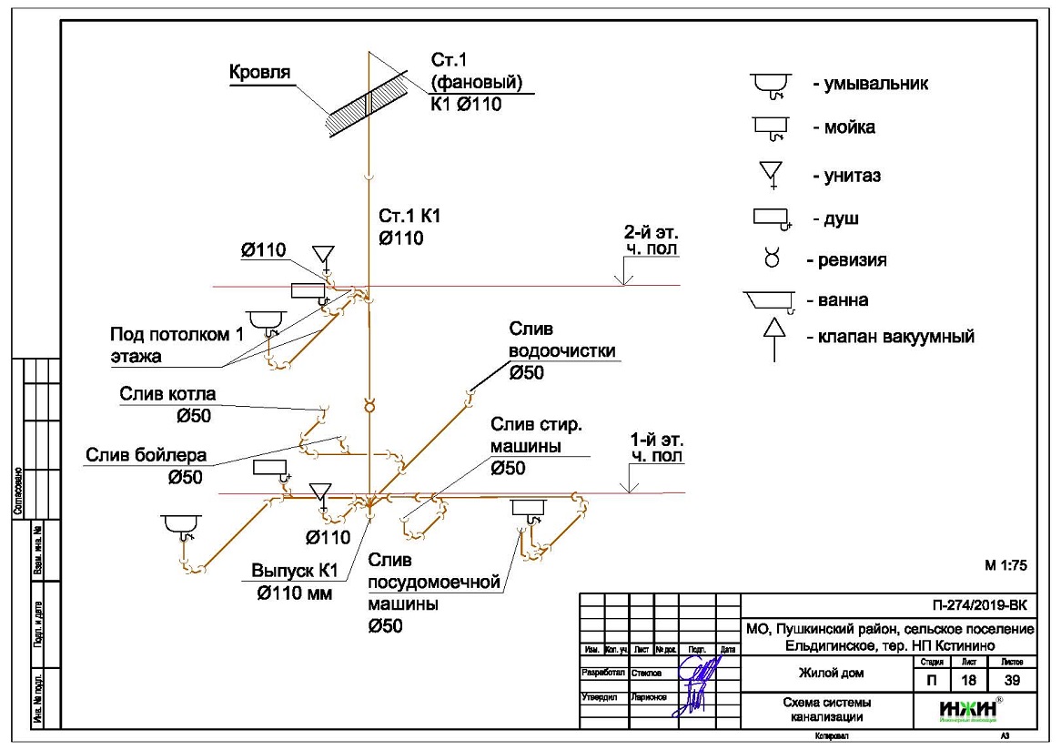 Внутренняя канализация (проект канализации) дома в НП Кстинино.