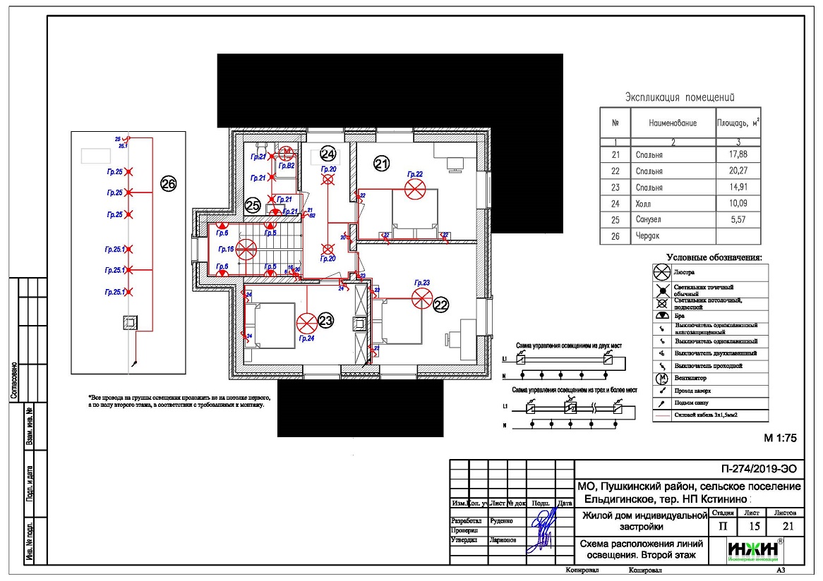 4. Чертежи групповых осветительных сетей дома в НП Кстинино.