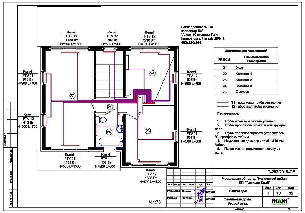 3. Комплект поэтажных чертежей радиаторного отопления дома в КП "Тишково Клаб".