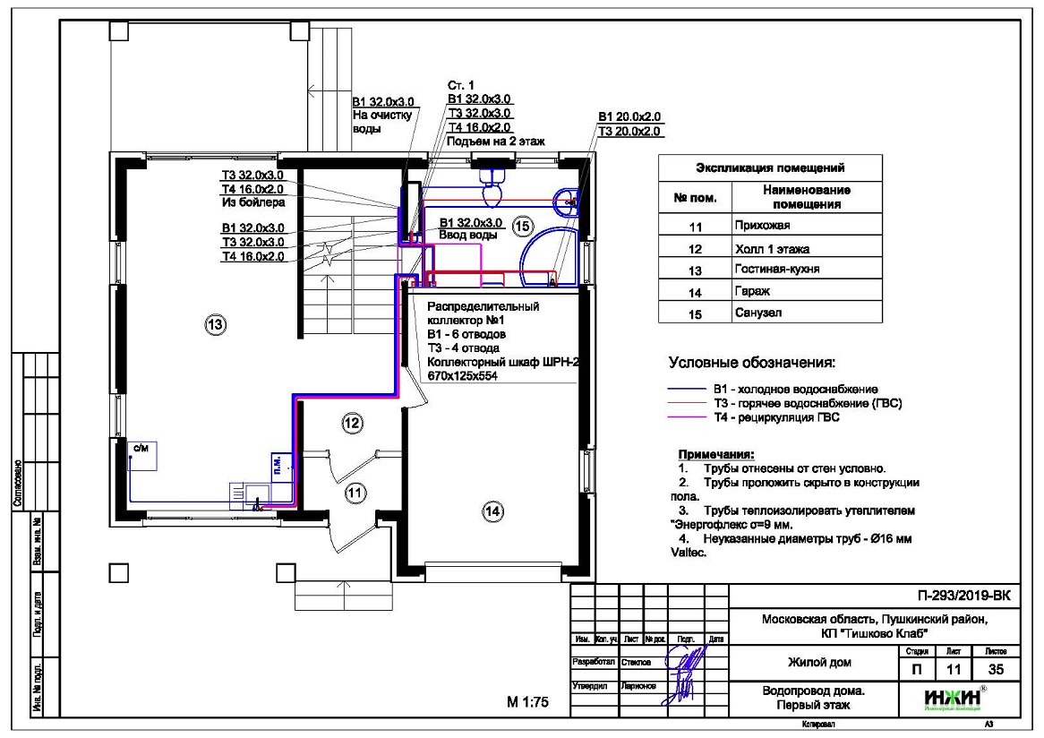Внутренний водопровод дома в КП "Тишково Клаб" (проект водоснабжения).
