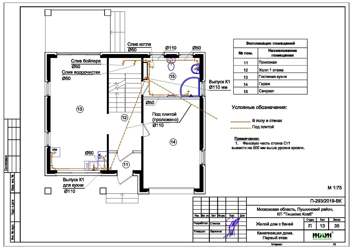 Внутренняя канализация (проект канализации) дома в КП "Тишково Клаб".