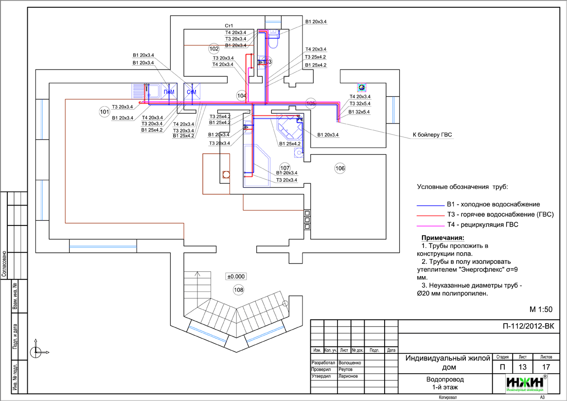 Проект отопления, водоснабжения и канализации выполнен: 09.01.2013