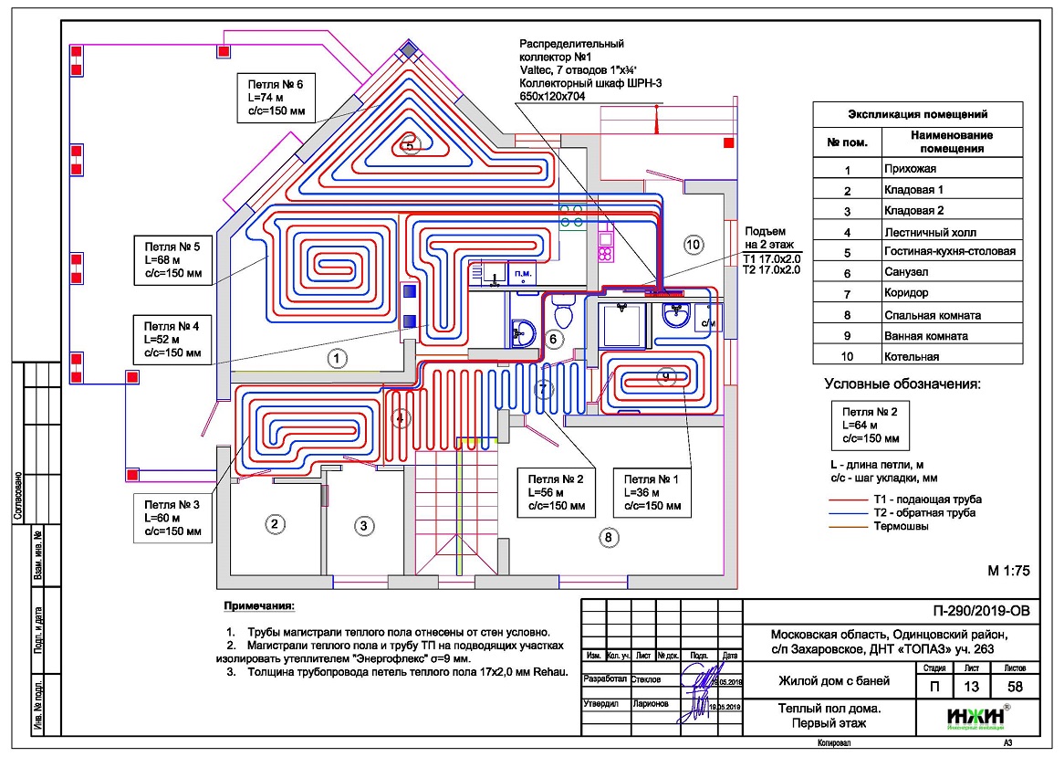 Водяной теплый пол дома в ДНП "Топаз" (проект теплого пола).
