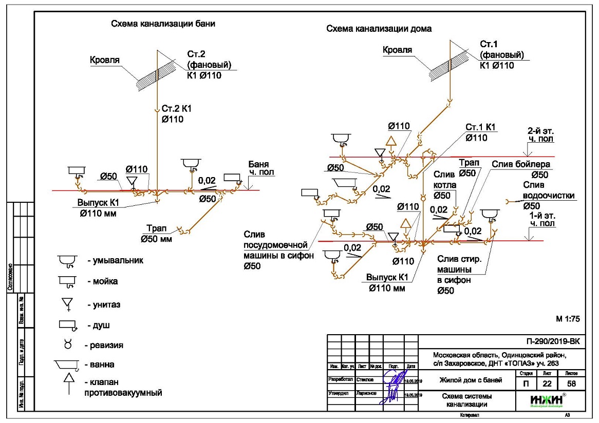 Внутренняя канализация (проект канализации) дома в ДНП "Топаз".
