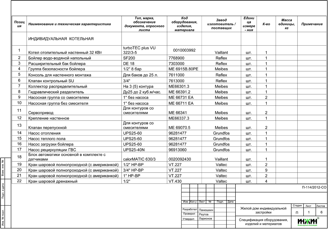 Проект отопления, водоснабжения и канализации выполнен: 22.01.2013