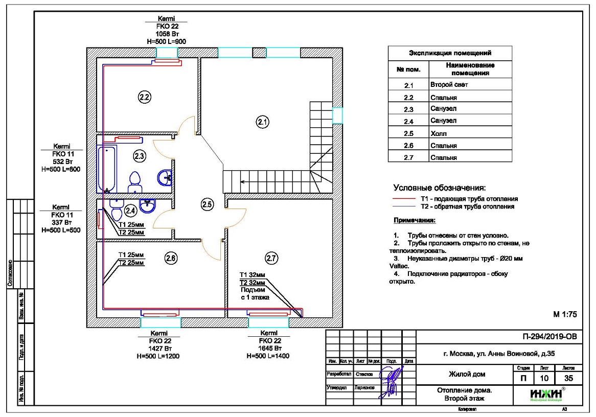 Объем проекта отопления, канализации и водоснабжения дома: 35 листов.