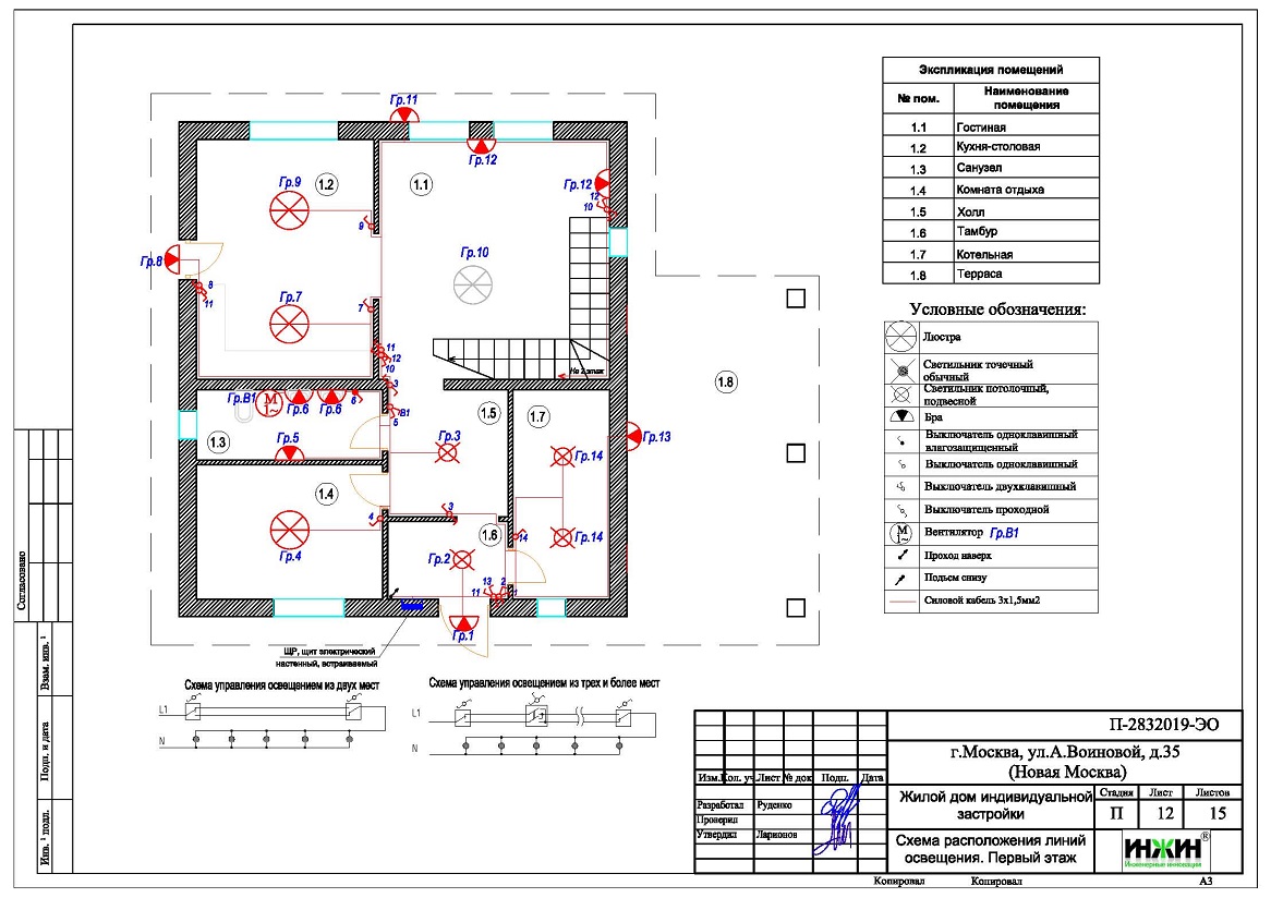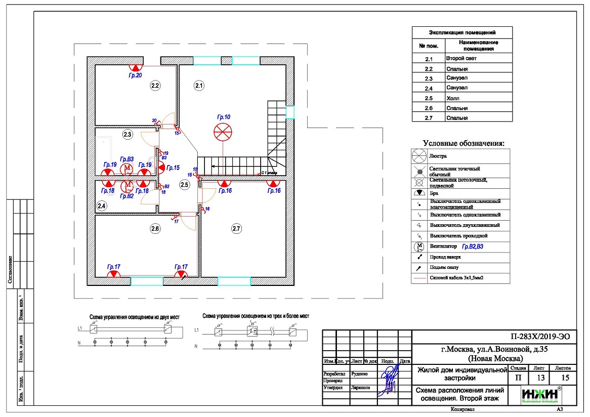 4. Чертежи групповых осветительных сетей дома в КП "Сатинские Пруды".