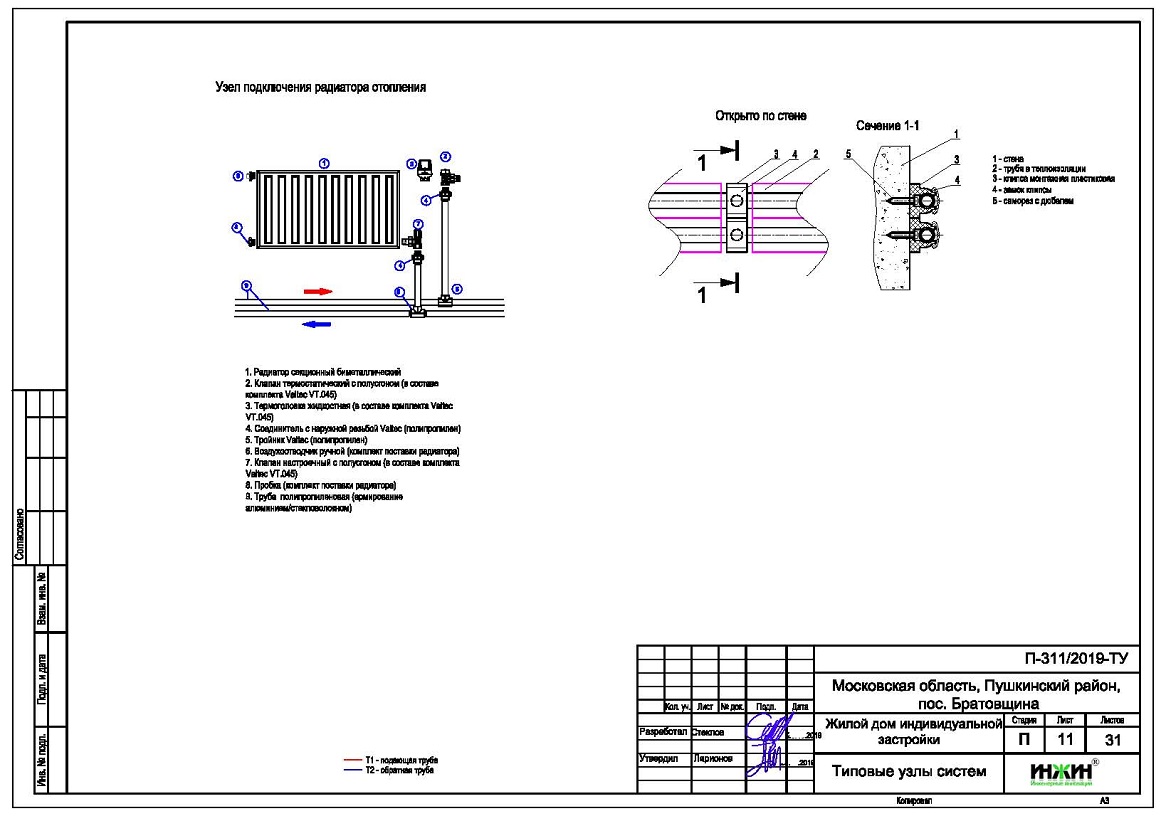 3. Комплект поэтажных чертежей радиаторного отопления дома в пос. Братовщина.