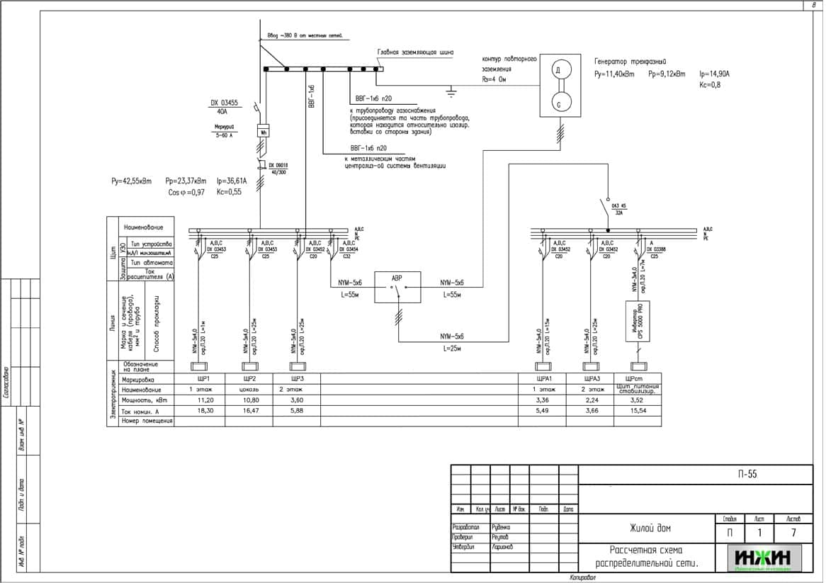 Однолинейные схемы вводного распределительного устройства и поэтажных распределительных щитов.