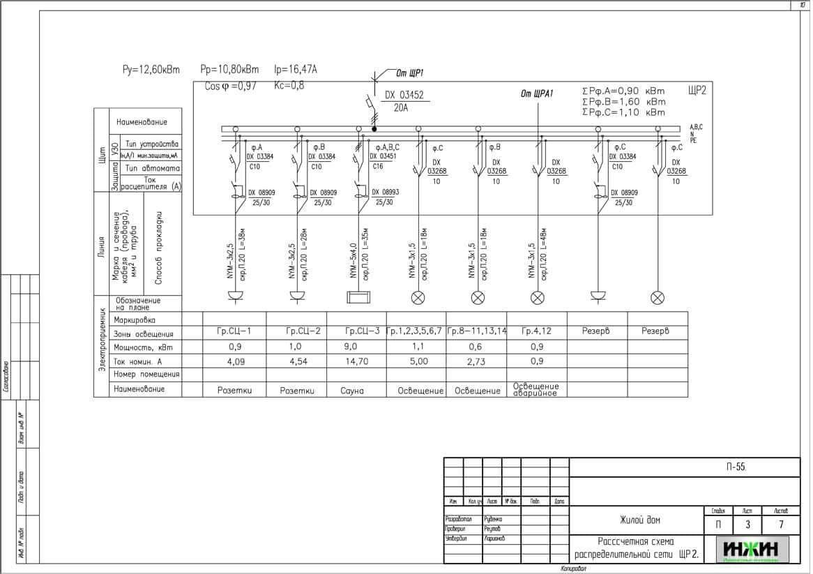 Состав проекта электрики дома в дер. Кишлеево Владимирской области: