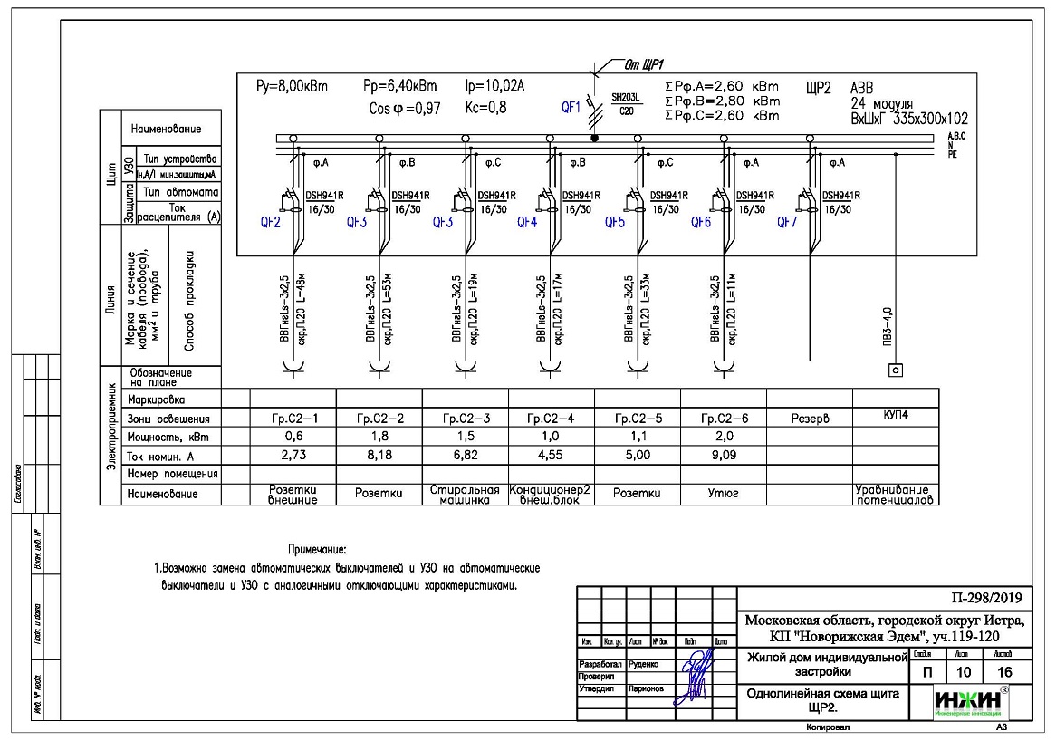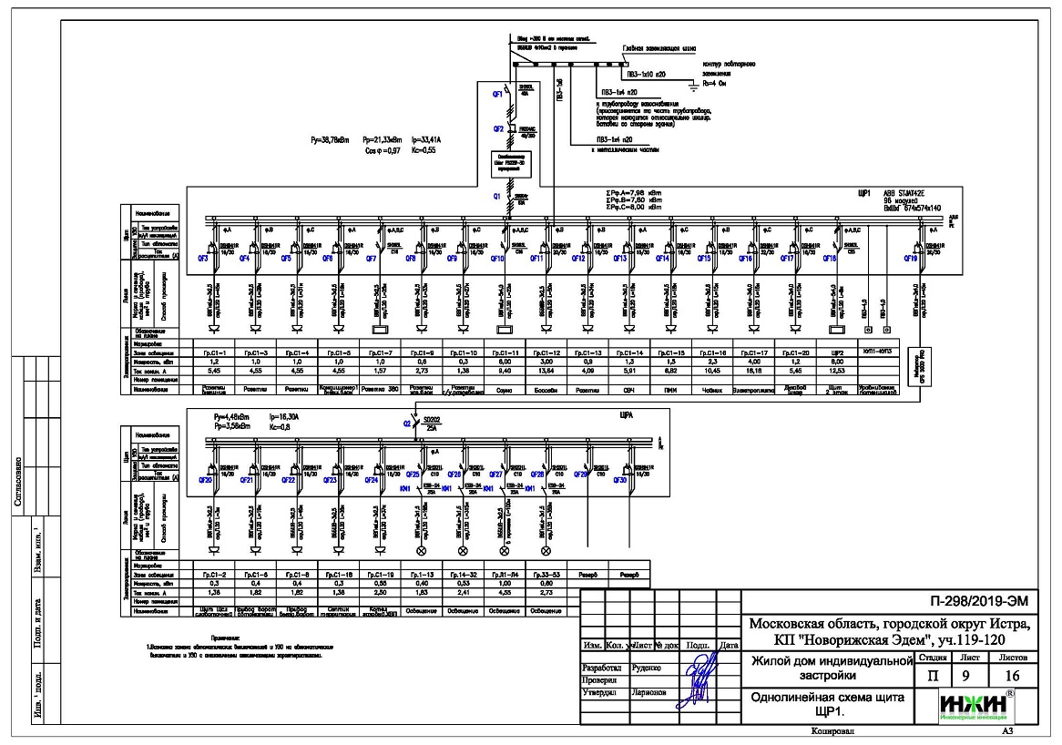 2. Однолинейные схемы вводного распределительного устройства и электрического распределительного щита дома 327 м.кв.