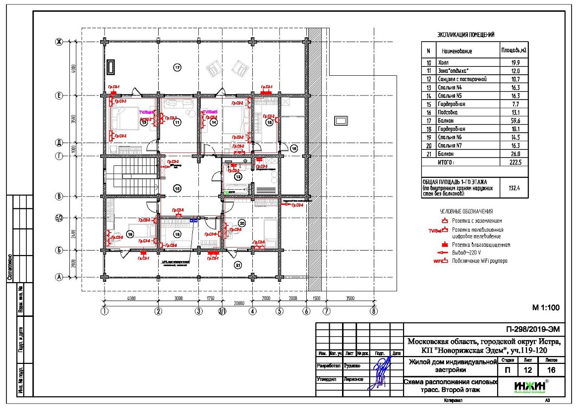 Объем проекта электрики дома 327 м.кв.: 16 листов.