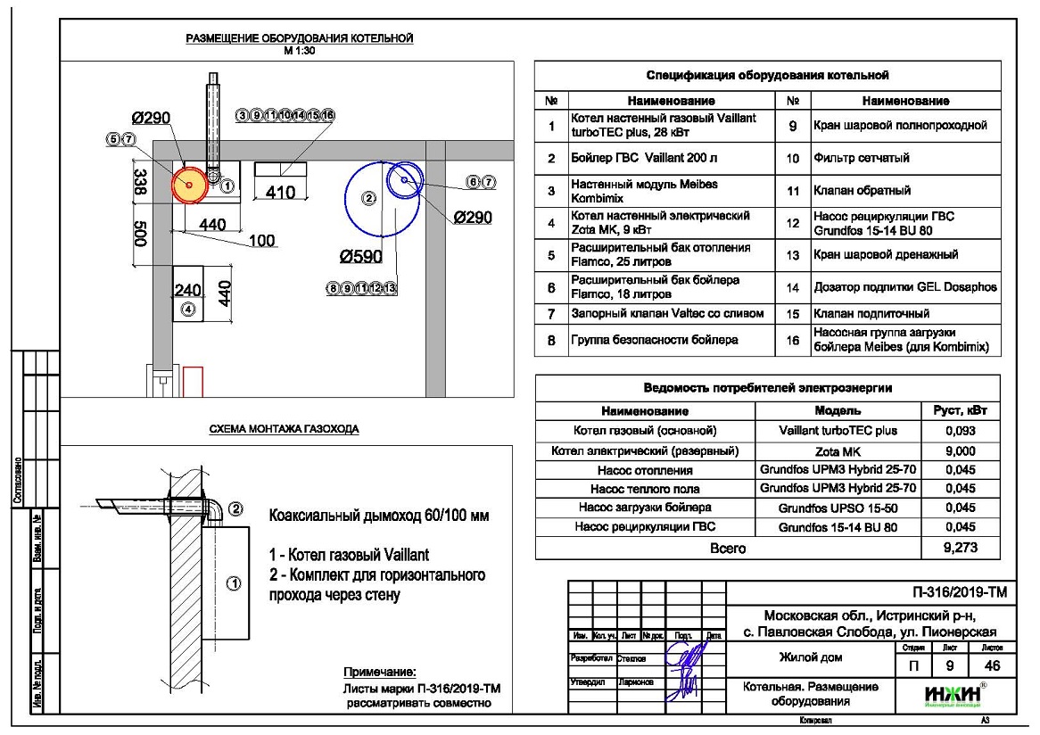 Состав проекта котельной, отопления, канализации и водоснабжения дома в с. Павловская Слобода: