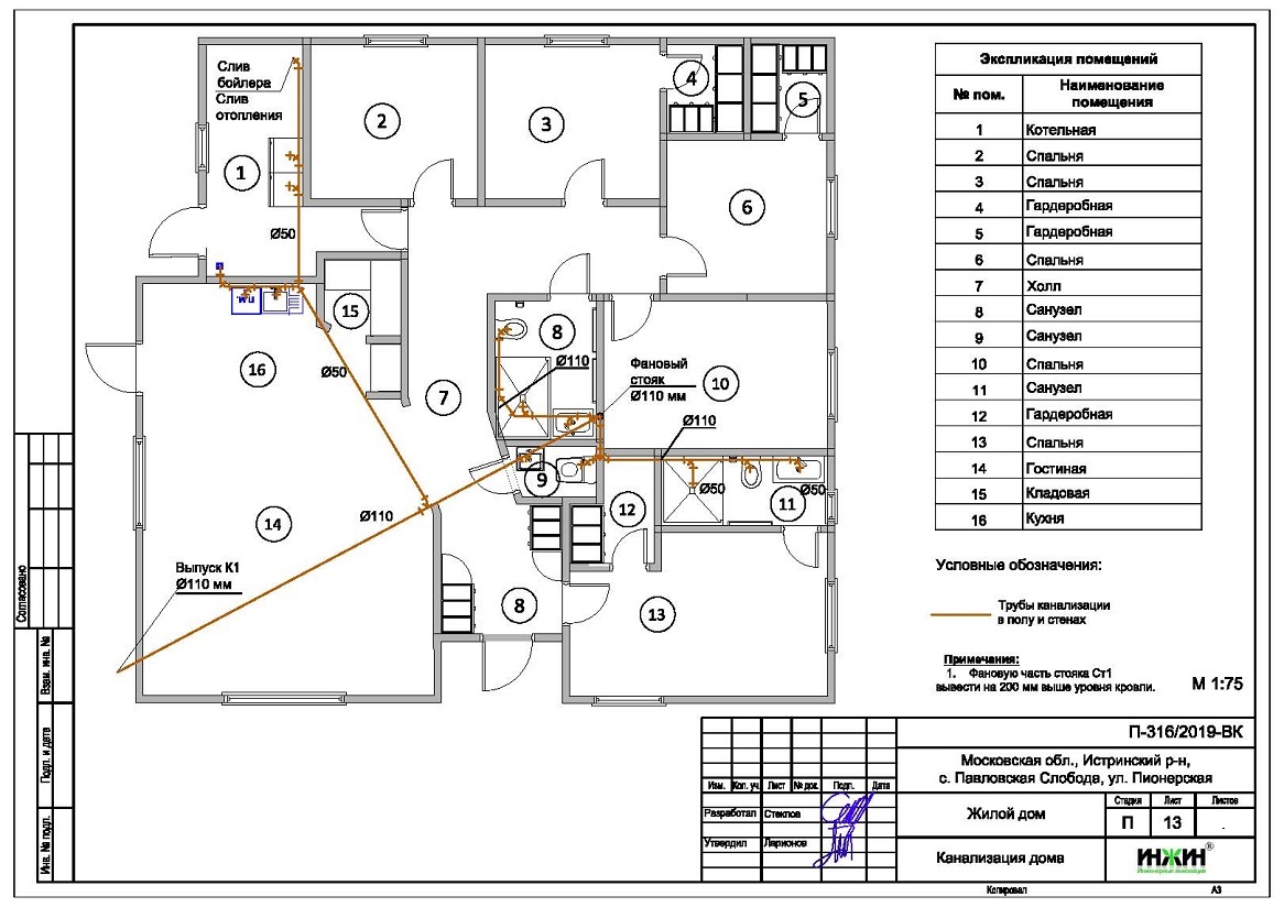 Внутренняя канализация (проект канализации) дома в с. Павловская Слобода.