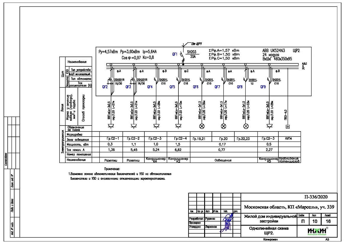 2. Однолинейные схемы вводного распределительного устройства и электрического распределительного щита дома 179 м.кв.