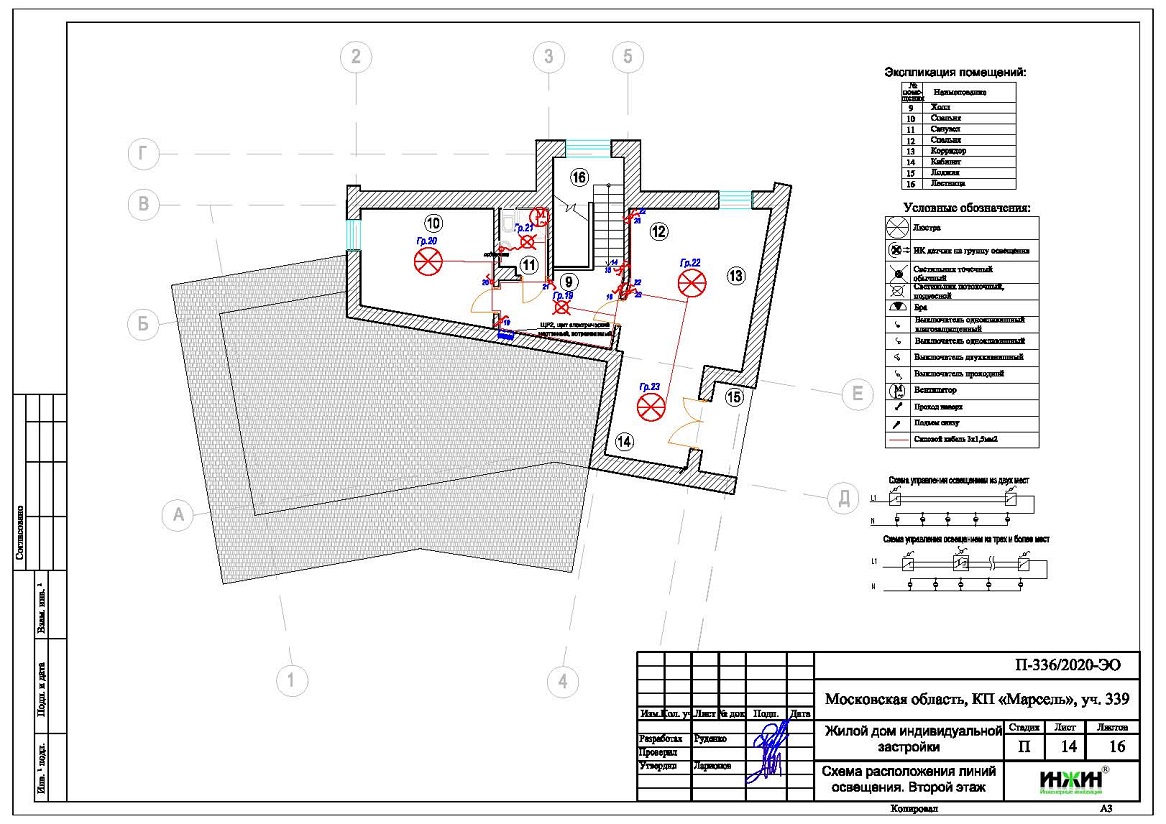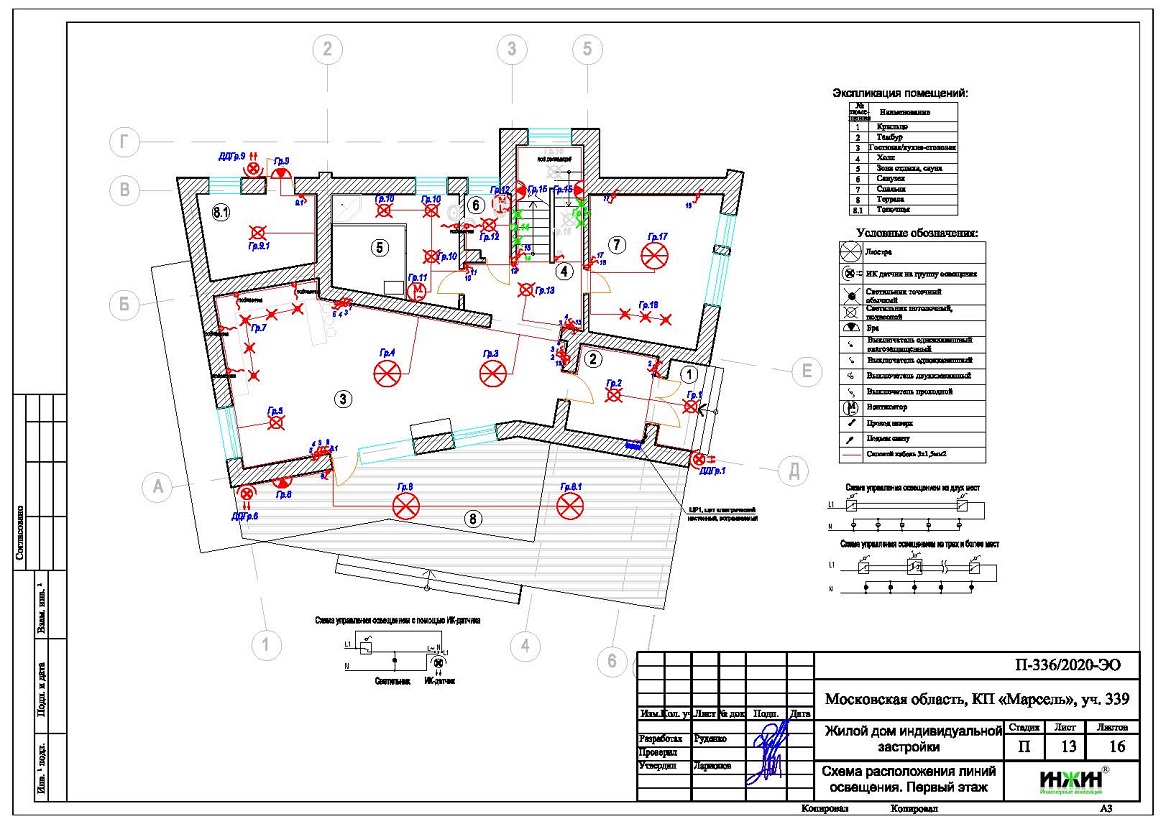 4. Чертежи групповых осветительных сетей дома в КП "Марсель".