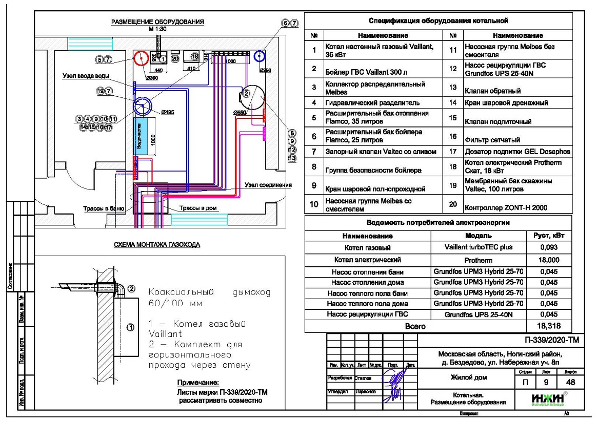 Объем проекта отопления, канализации и водоснабжения дома: 48 листов.
