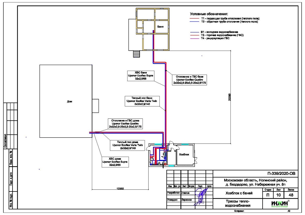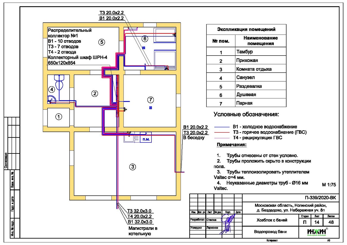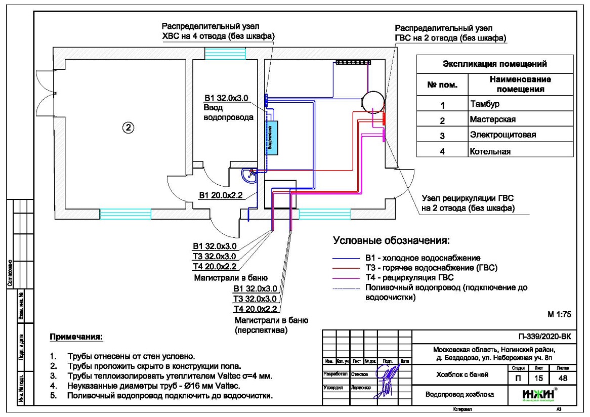 Внутренний водопровод дома с баней в дер. Бездедово (проект водоснабжения).