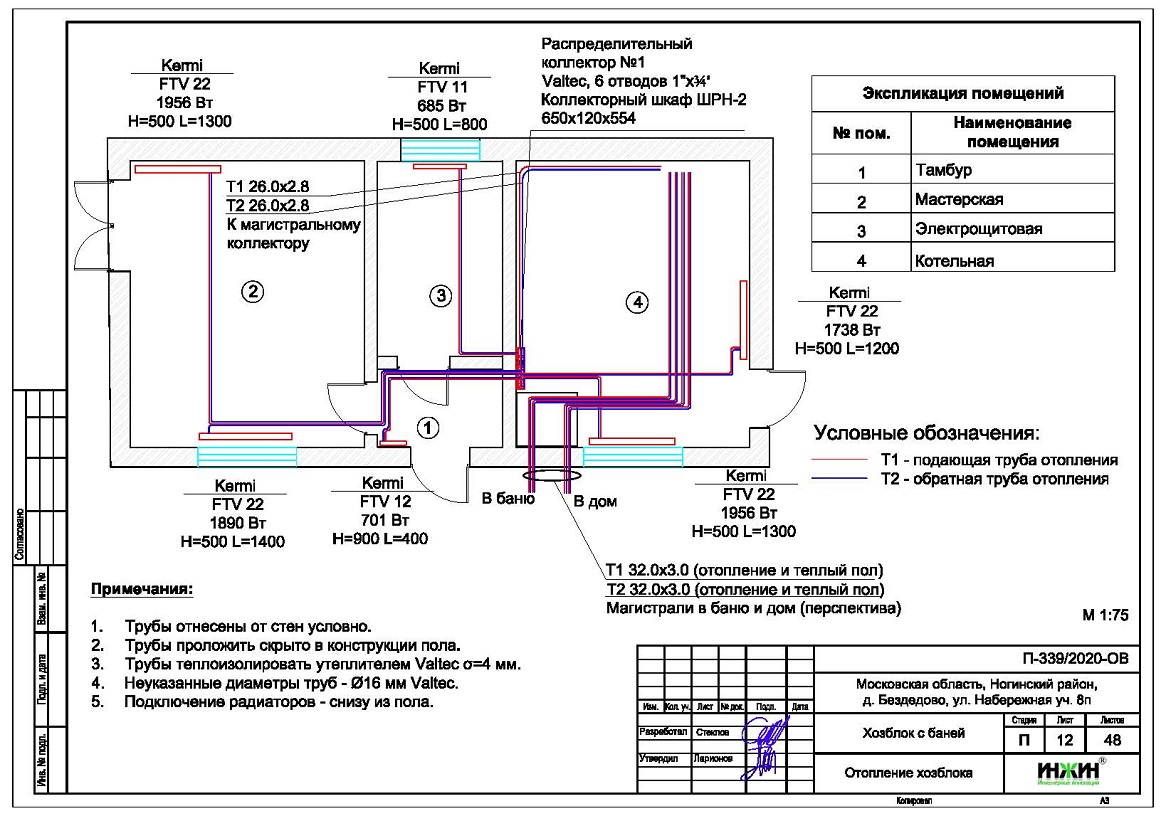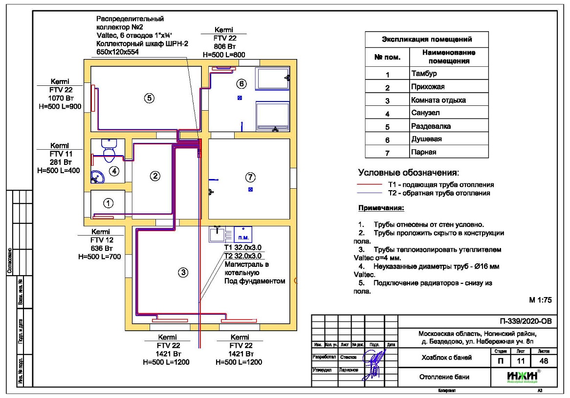 Отопление дома с баней в дер. Бездедово (проект отопления дома).