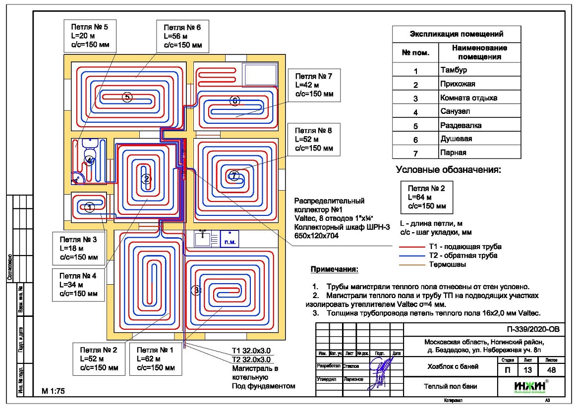 Водяной теплый пол бани в дер. Бездедово (проект теплого пола).