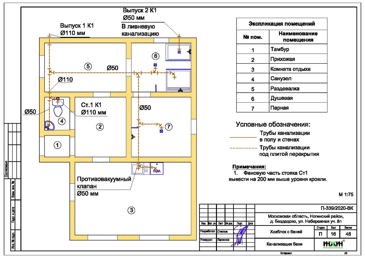 Внутренняя канализация (проект канализации) дома с баней в дер. Бездедово.
