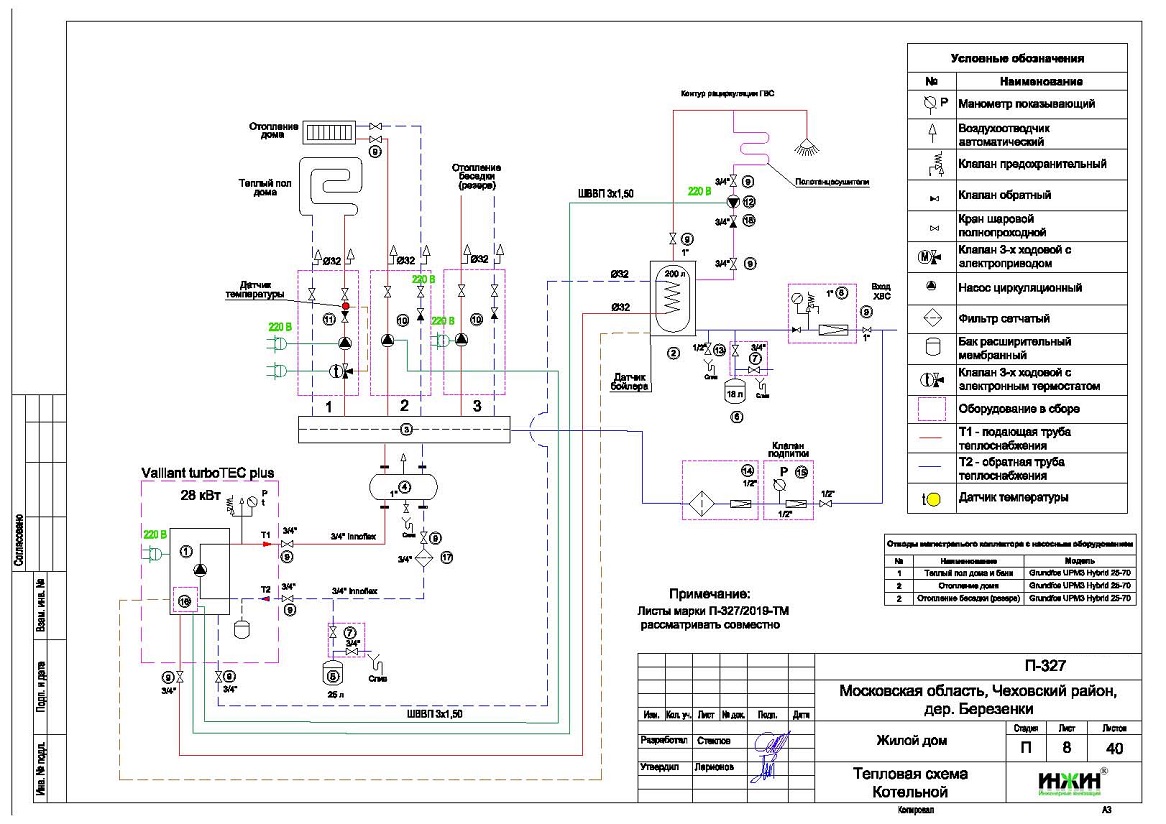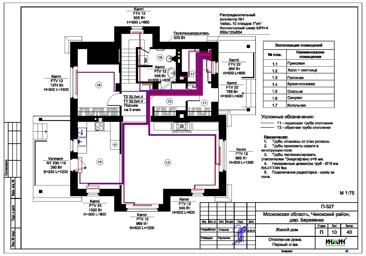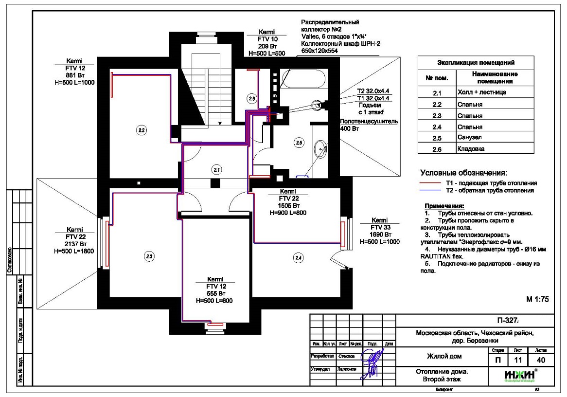Объем проекта отопления, канализации и водоснабжения дома: 40 листов.