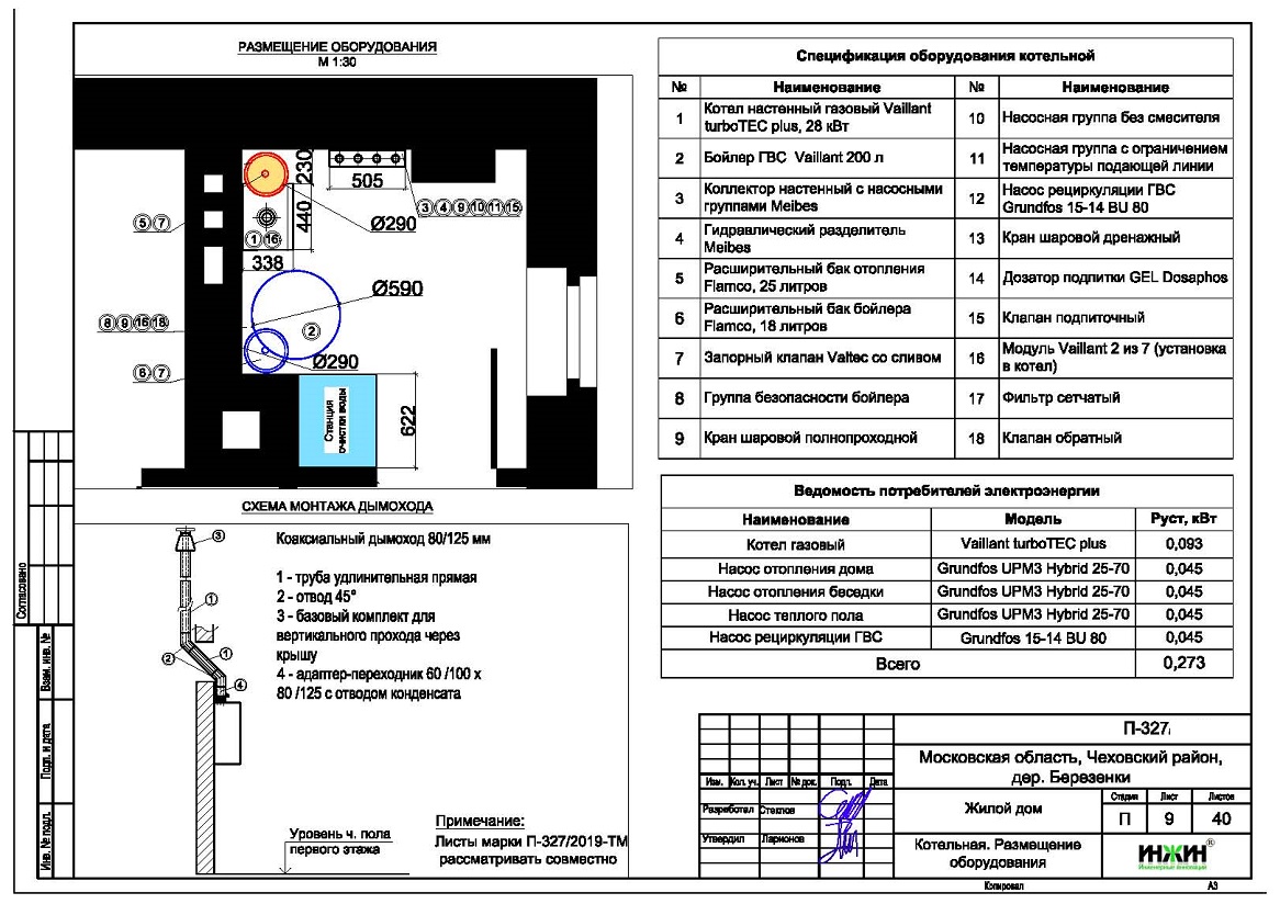 Состав проекта котельной, отопления, канализации и водоснабжения дома в дер. Березенки: