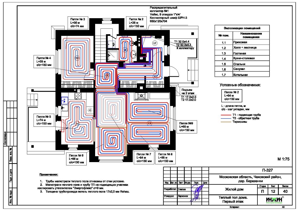 Водяной теплый пол дома в дер. Березенки (проект теплого пола).