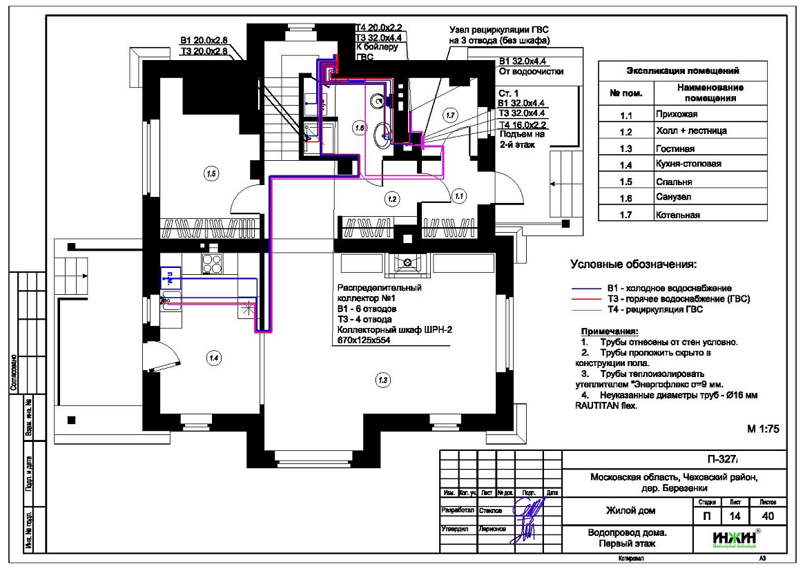 Внутренний водопровод дома в дер. Березенки (проект водоснабжения).