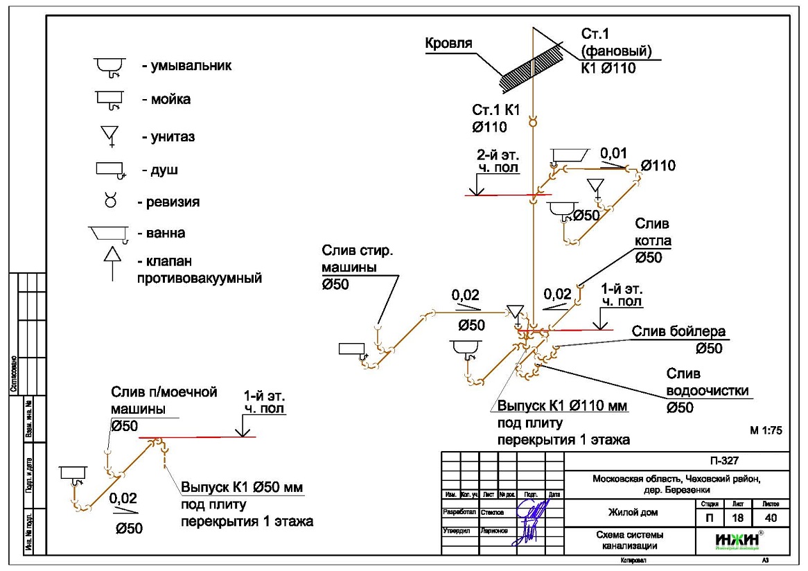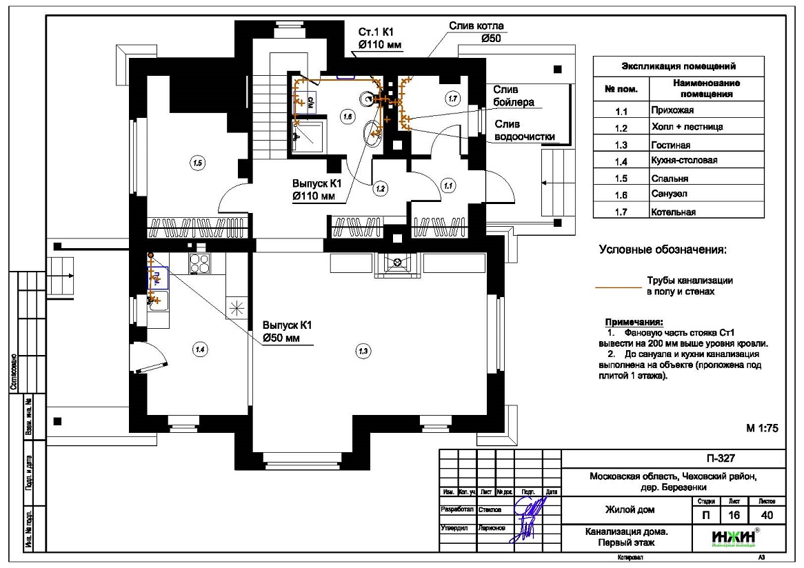 Внутренняя канализация (проект канализации) дома в дер. Березенки.