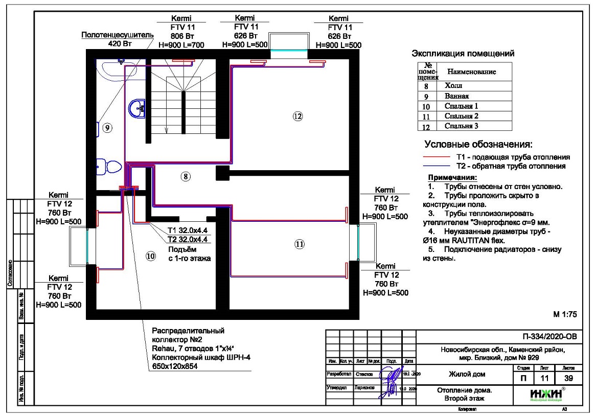 3. Комплект поэтажных чертежей радиаторного отопления дома в Новосибирске.