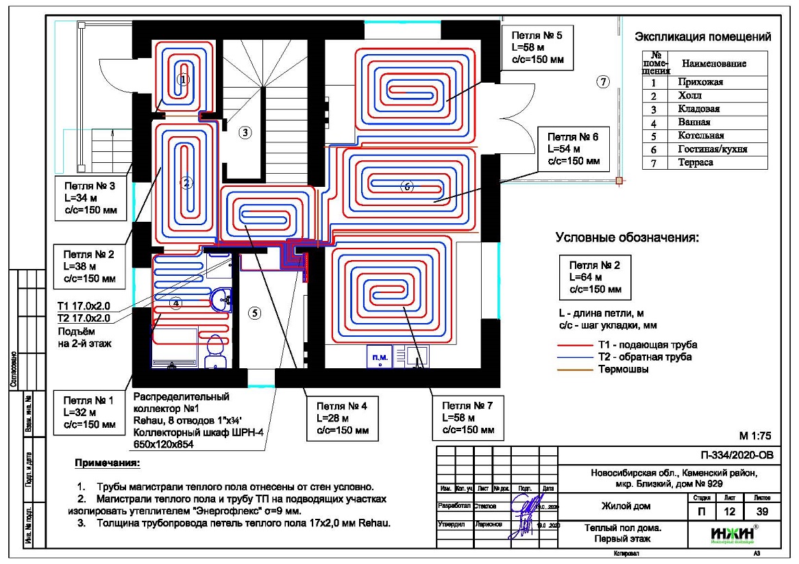 Водяной теплый пол дома в Новосибирске(проект теплого пола).