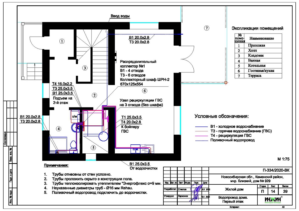 Внутренний водопровод дома в Новосибирске (проект водоснабжения).