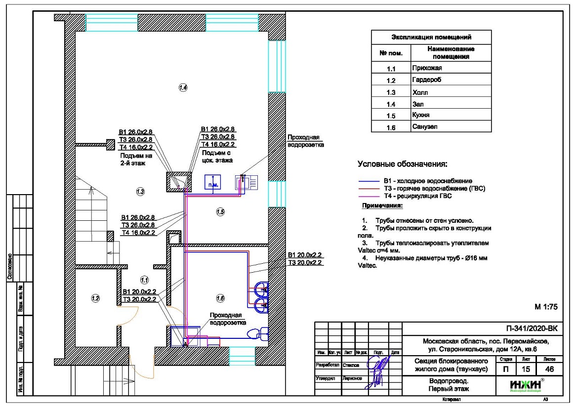 Внутренний водопровод таунхауса в пос. Первомайское (проект водоснабжения).