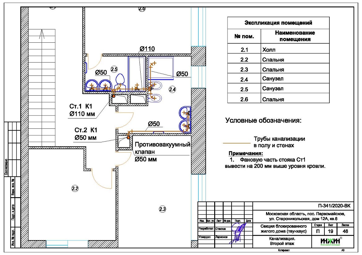 Внутренняя канализация (проект канализации) таунхауса в пос. Первомайское.