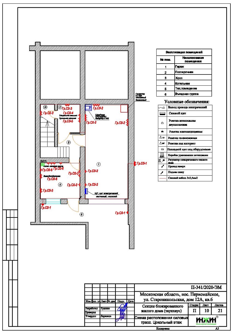 Проект электрики таунхауса в пос. Первомайское выполнен: 22.06.2020