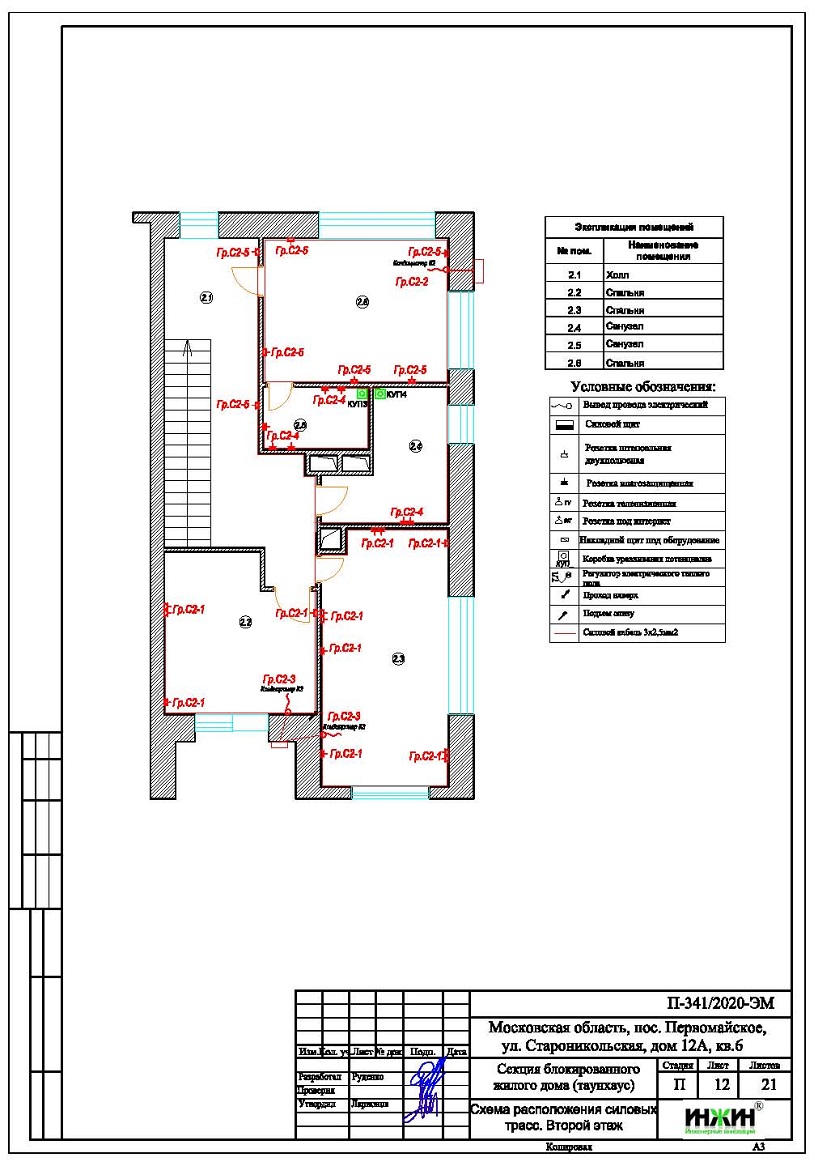 Объем проекта электрики таунхауса 224 м.кв.: 21 лист.