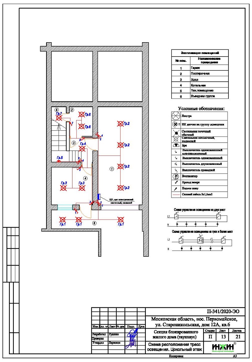 3. Чертежи электропроводки подвала и 1 этажа таунхауса в пос. Первомайское.