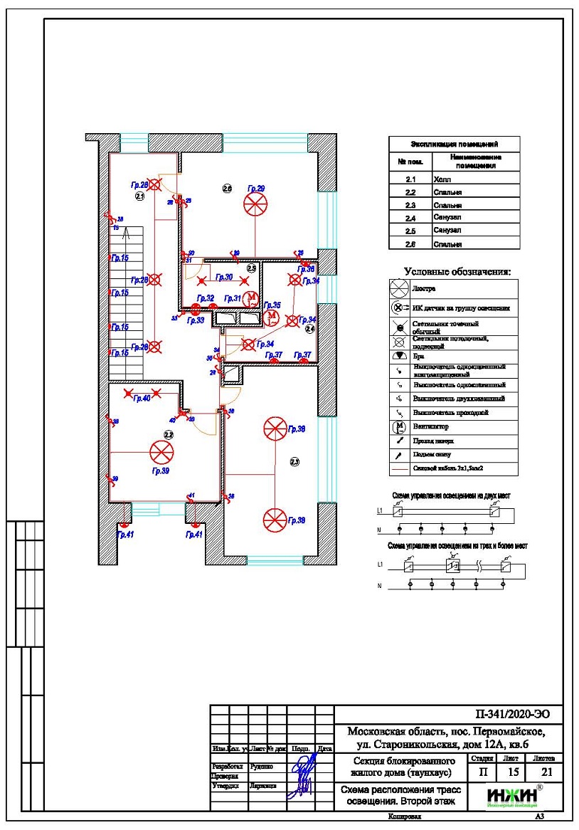4. Чертежи групповых осветительных сетей таунхауса в пос. Первомайское.