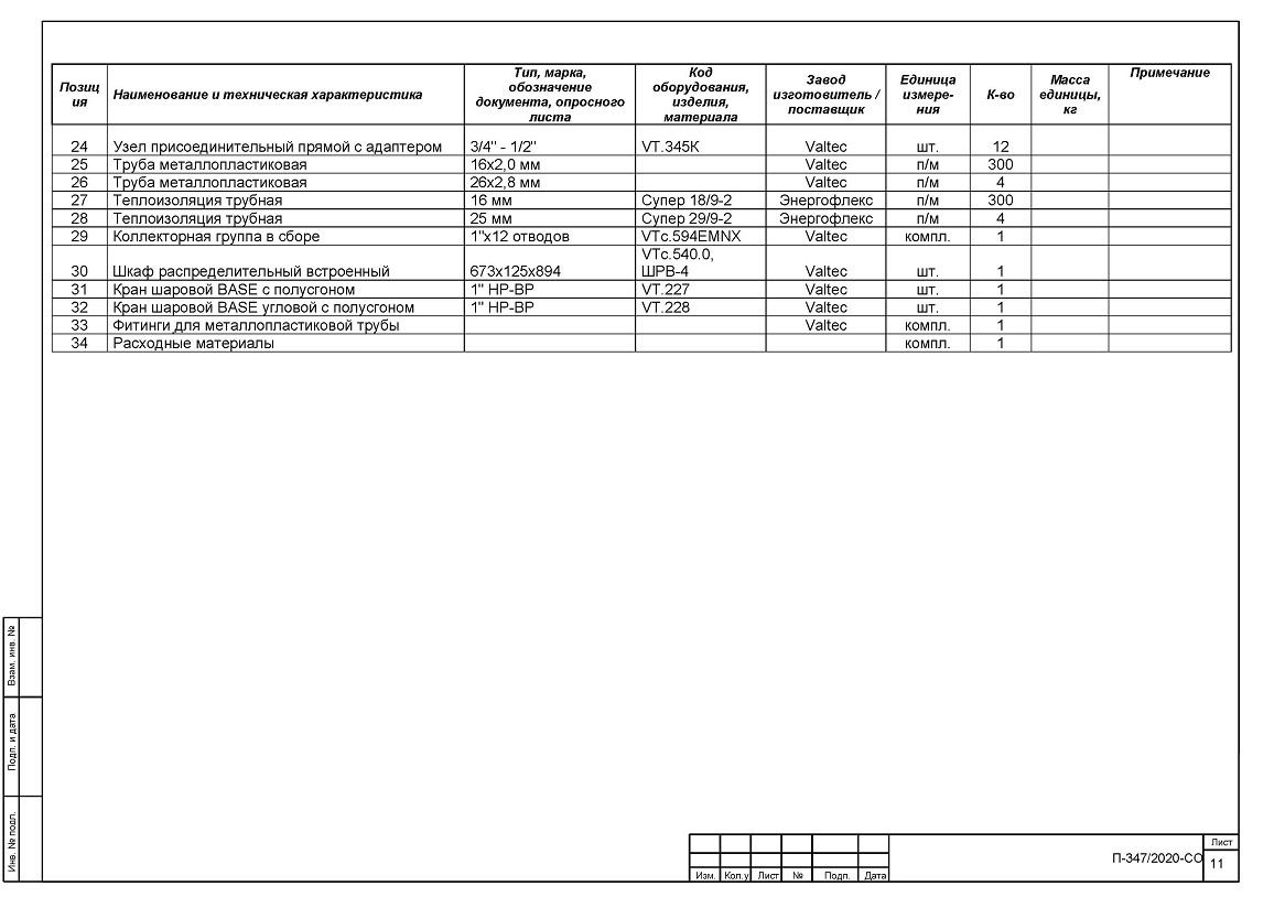 o Схема радиаторного отопления дома двухтрубная, коллекторно-лучевая, с принудительной циркуляцией теплоносителя и температурным графиком 80/60°С, коллекторы отопления Valtec, на 7 и 4 овода;